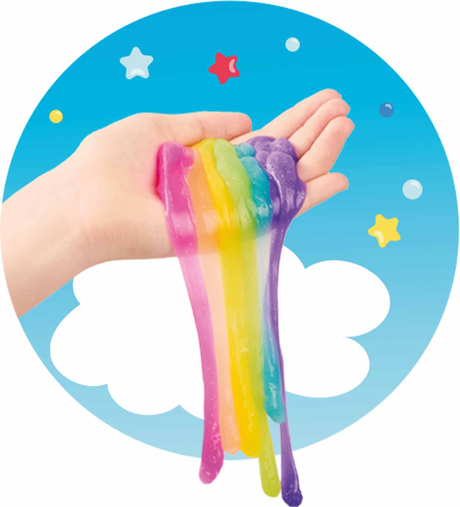Diese weiche Glibbermasse in knalligen Regenbogenfarben mit schimmernden Glitzerpartikeln lässt sich nach Herzenslust auseinanderziehen, drücken und strecken.