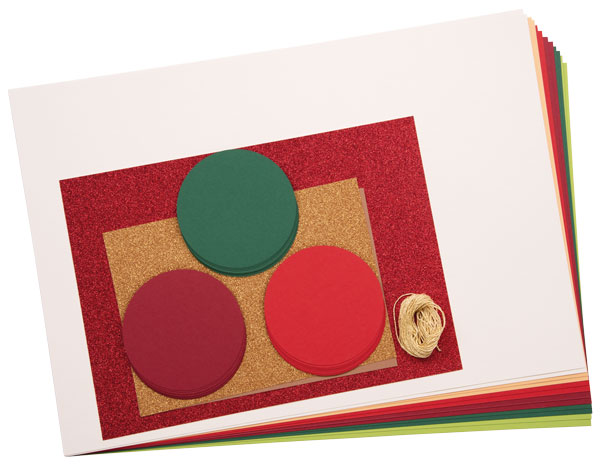 Inhalt: 30 Fotokartonkreise sortiert (bereits ausgeschnitten), Fotokarton sortiert, Glitterkarton sortiert, Goldkordel