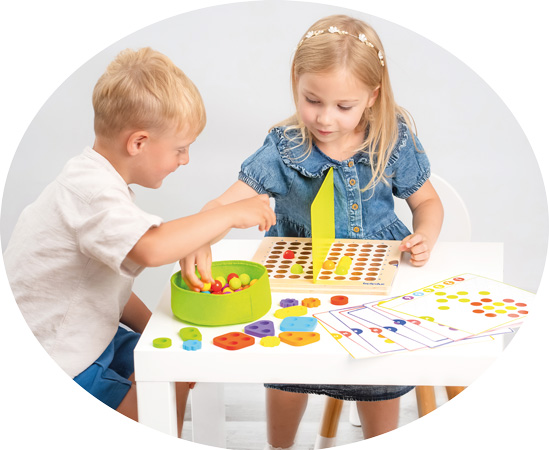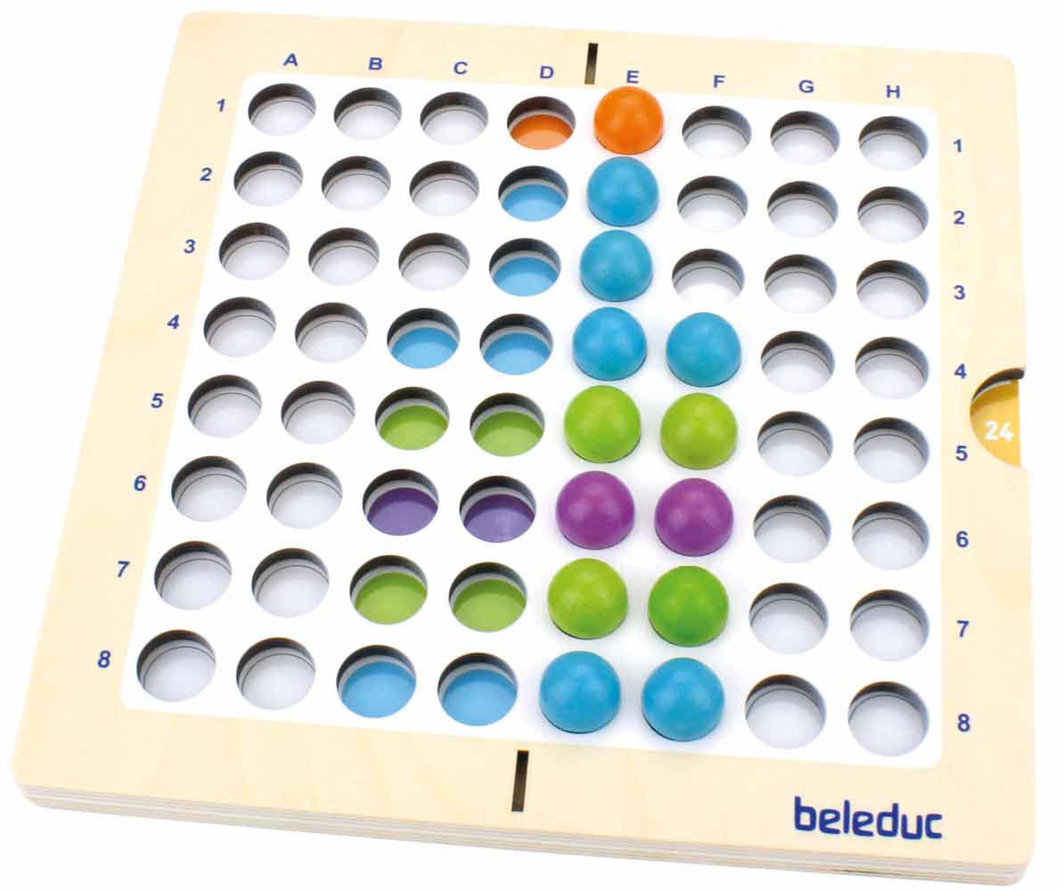 Dieses Sortierspiel mit bunten Kugeln und Holzformen beinhaltet 17 Karten mit unterschiedlichen Motiven, Aufgaben und Anregungen. Marbelino 4 macht allein oder in der Gruppe viel Spaß und fördert die Kommunikation und Kooperation. Auch essenzielle Fähigkeiten, wie räumliche Vorstellung, das Erkennen von Reihenfolgen und Mustern, das Verständnis von Symmetrie und die Feinmotorik werden hier gefördert.