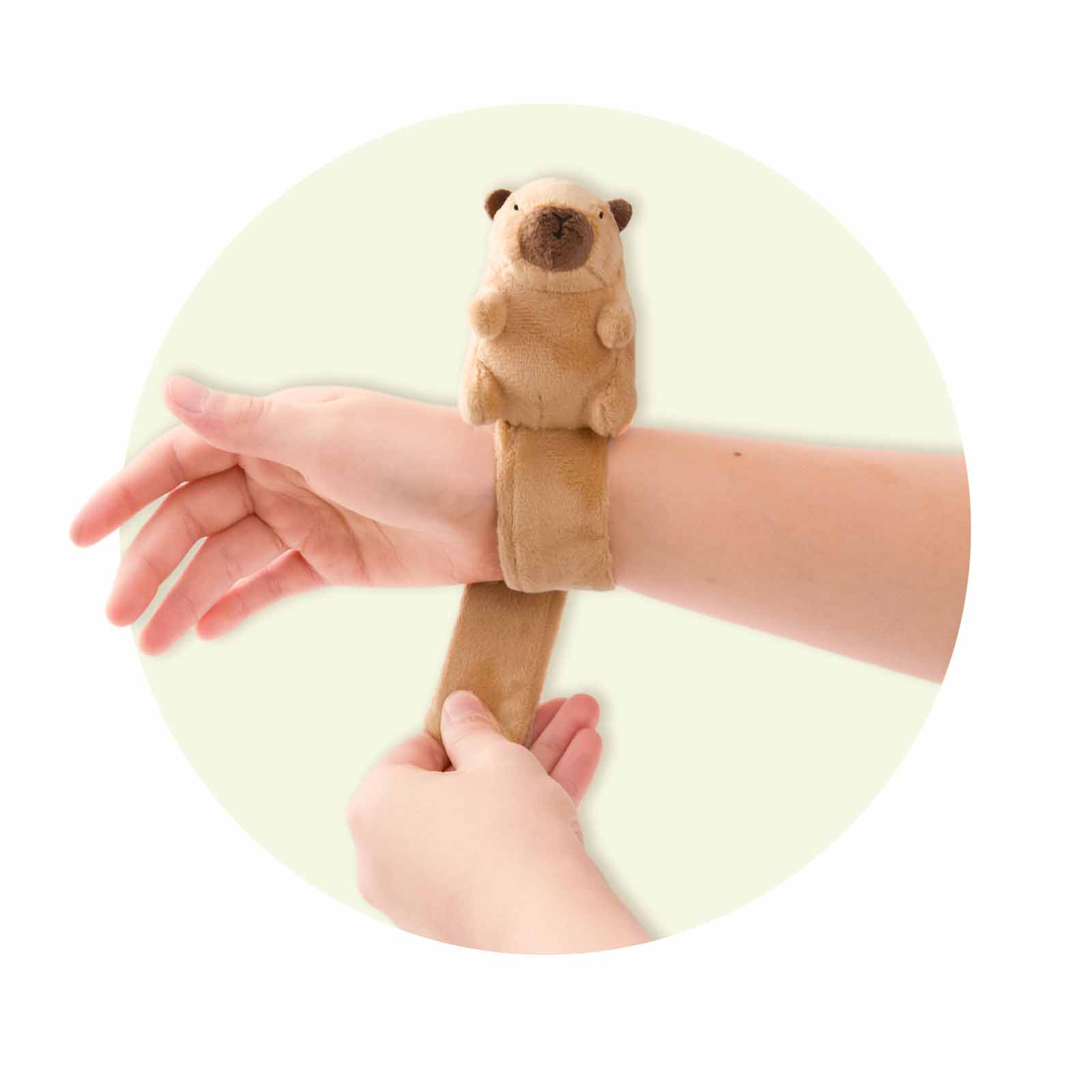 Dieses süße Snap-Armband mit einem flauschigen Capybara ist das perfekte Accessoire und ein echter Eyecatcher! Einfach ans Handgelenk schnappen und schon ist der weiche Plüsch-Capybara immer dabei!