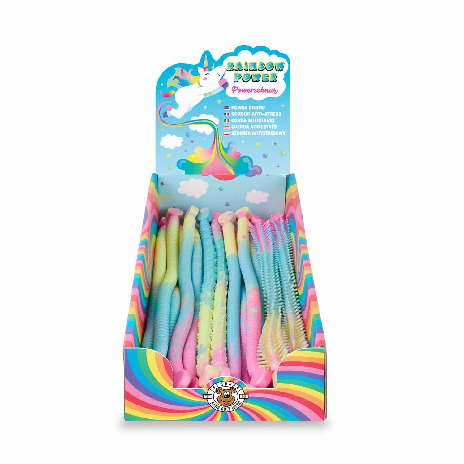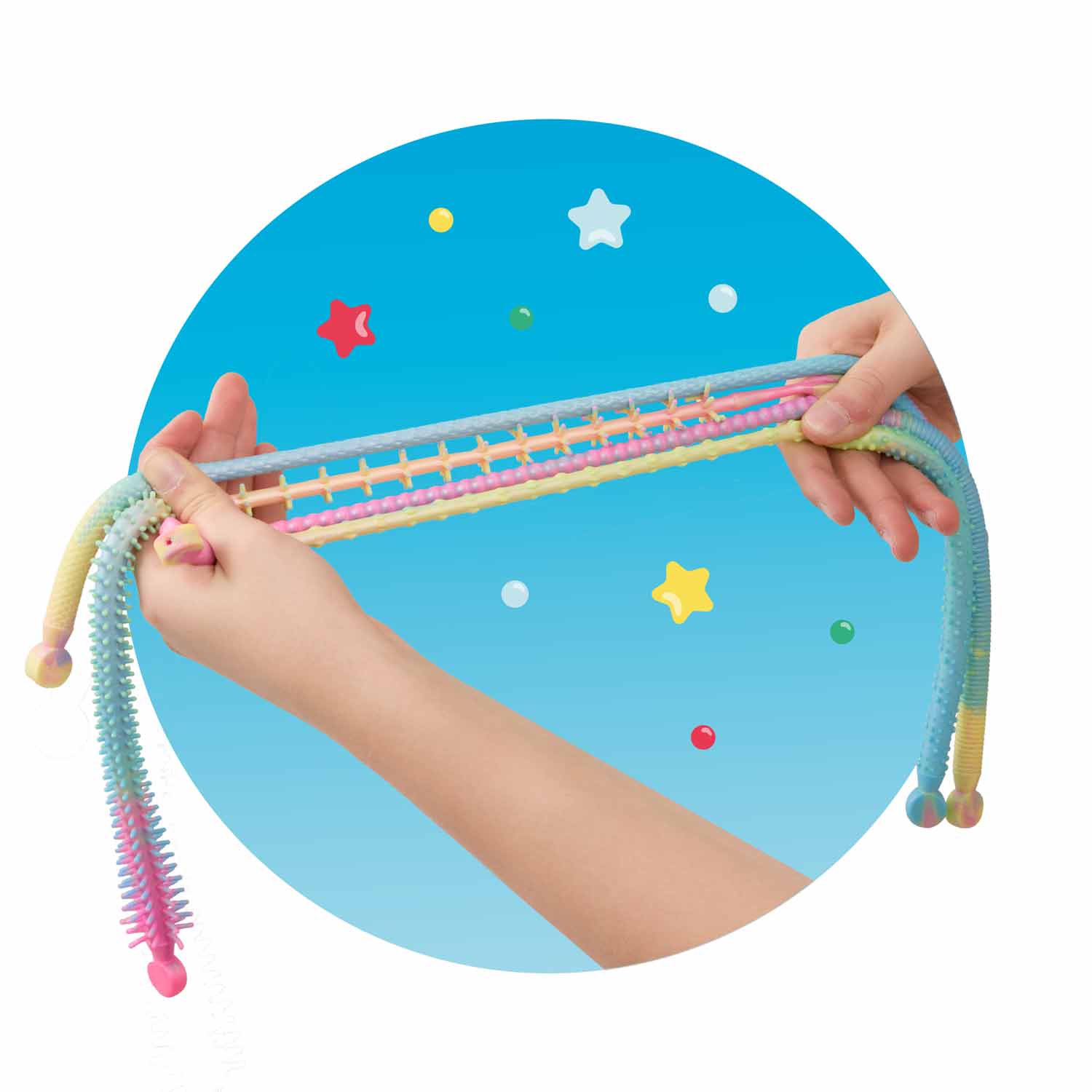 Die coolste Anti-Langeweile-Schnur - in verschiedenen Noppendesigns und mit praktischem Griffende. Zum Stretchen, Knoten und vieles mehr!
