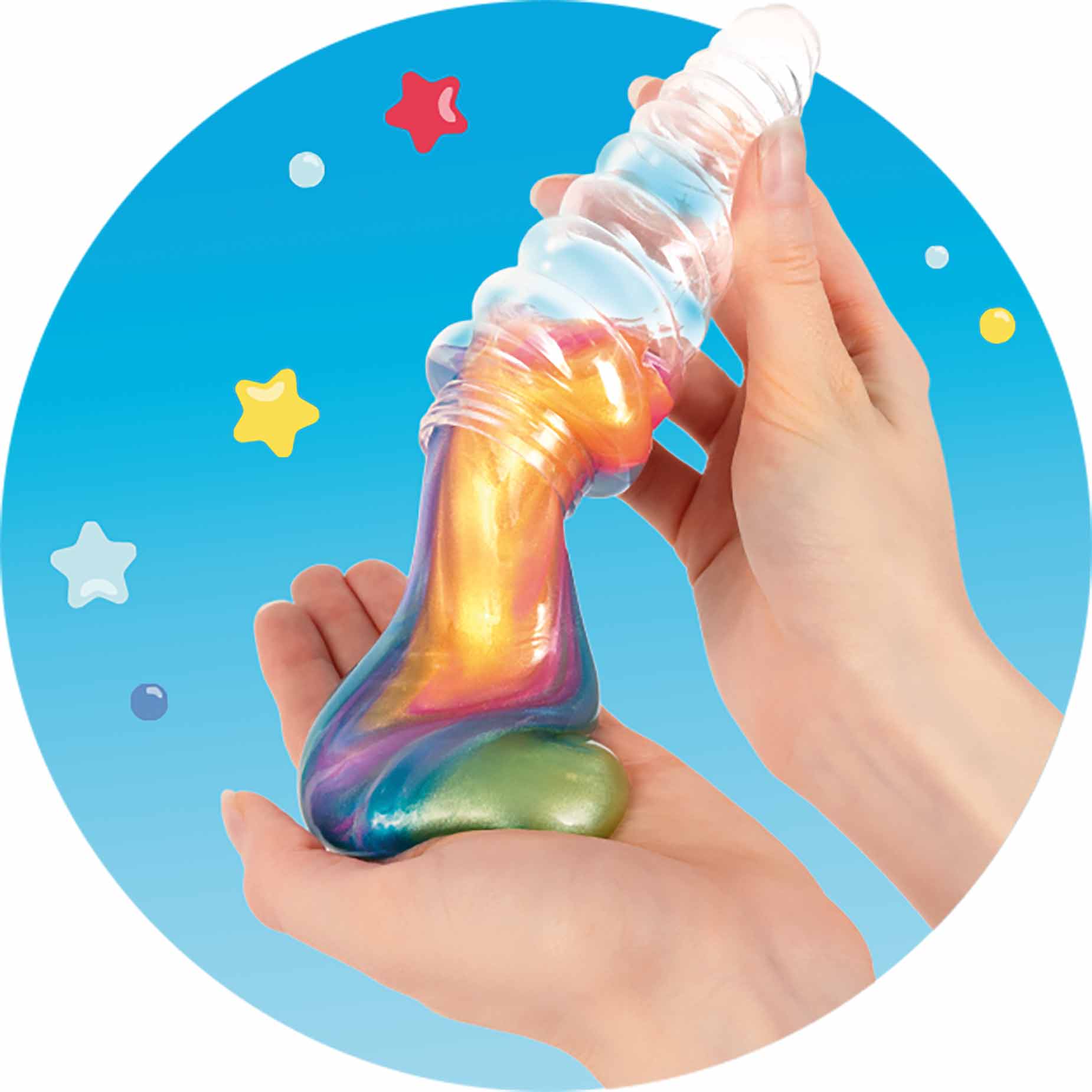 Dieser glitzernde Slime begeistert mit vier ineinander verlaufenden Farben und einem faszinierenden Schimmereffekt. Perfekt zum Ziehen und Experimentieren - ein unbeschreibliches Gefühl auf der Hand!