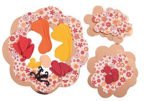 Inhalt: Ausgeschnittene Teile aus Metallic Karton, Motivmoosgummi, Moosgummi, Goldkordel
