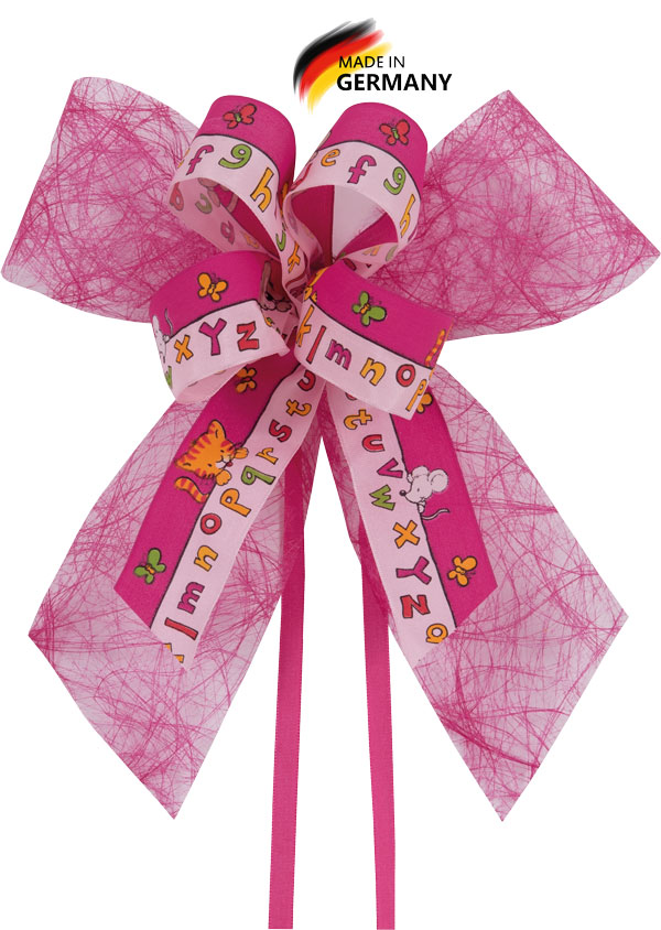 Schultütenschleife pink mit Alphabet