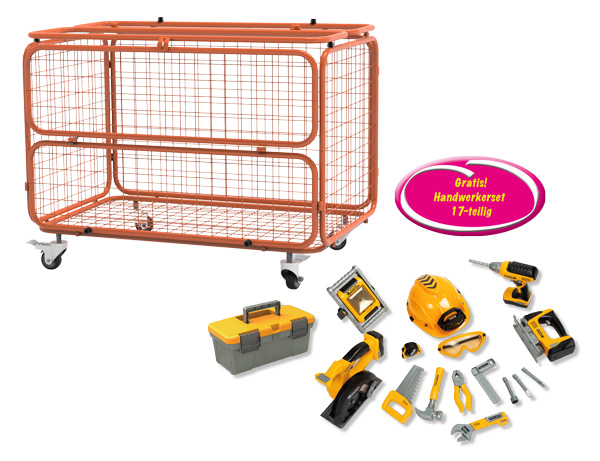 Der stabile Transportwagen eignet sich prima zum Verstauen von Sandspielzeug, Bällen und weiteren Spielzeugen.