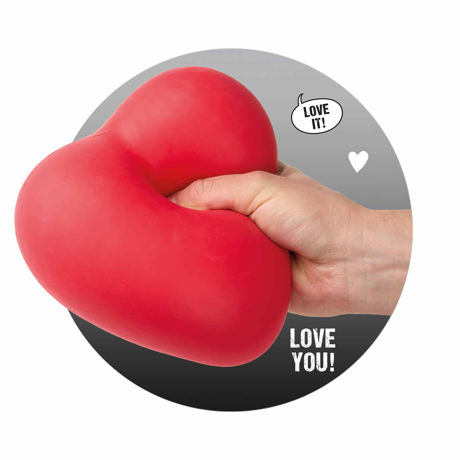 Love it! Dieses super-softe Antistress Herz im XXL-Format lädtz um Drücken, Knautschen und Kneten ein. Ob als Antistress-Spielzeug, Gag-Geschenk oder Deko - dieses Herz mit Soft-Touch-Haptik iste in echter Hingucker!